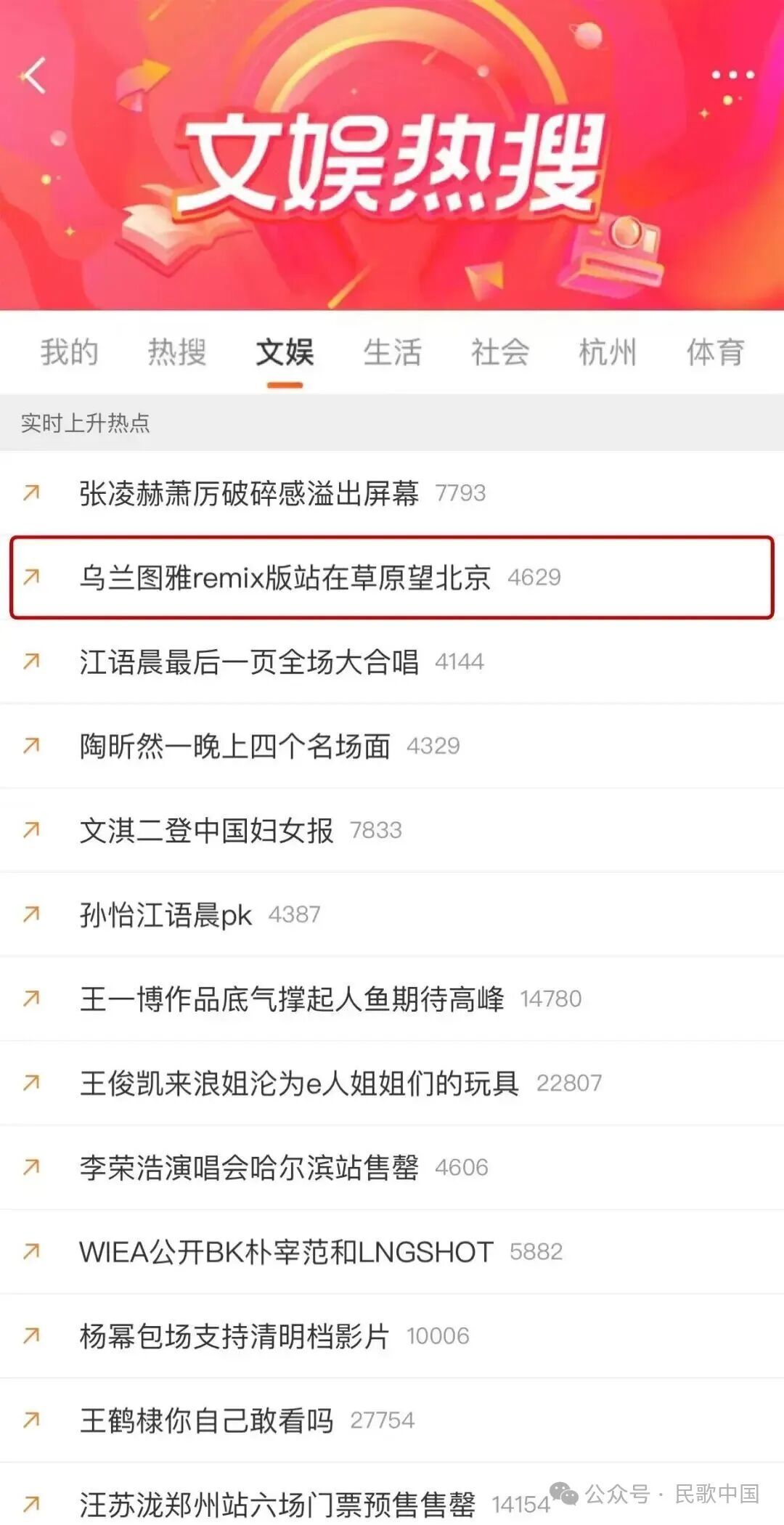 随着节目播出,“乌兰图雅pk范玮琪”、“乌兰图雅remix版站在草原望北京”迅速冲上热搜.