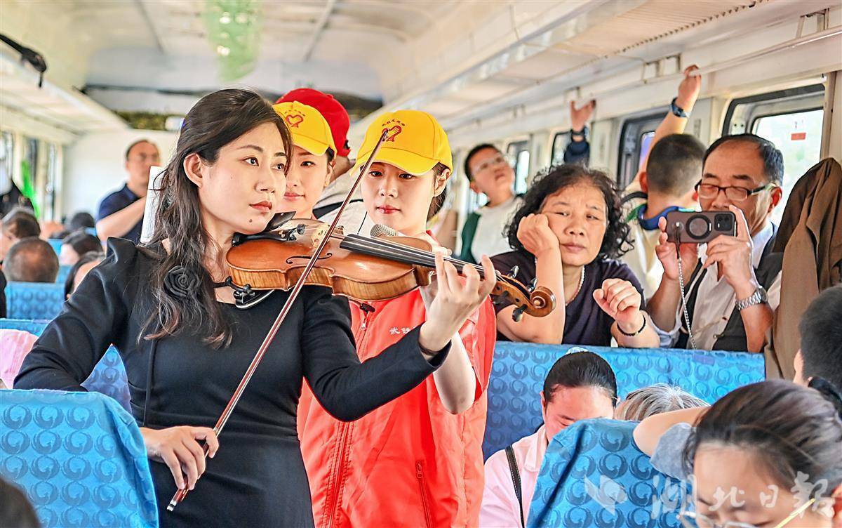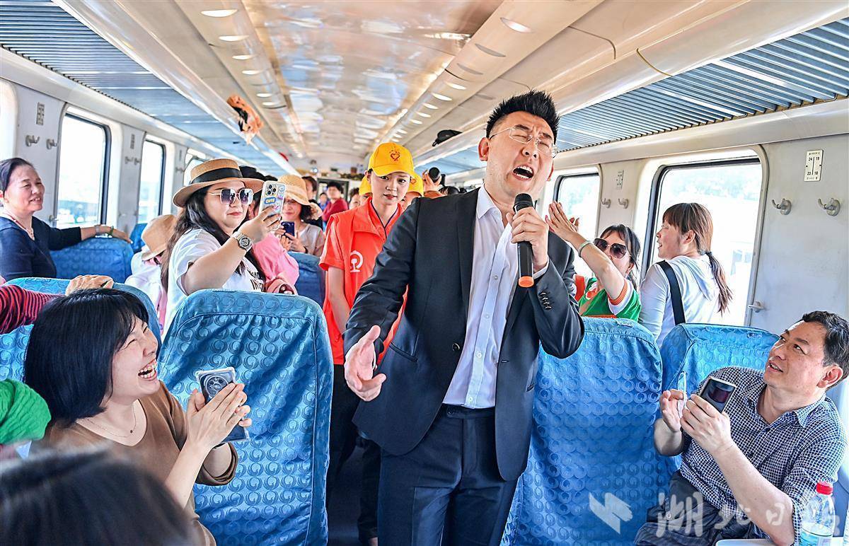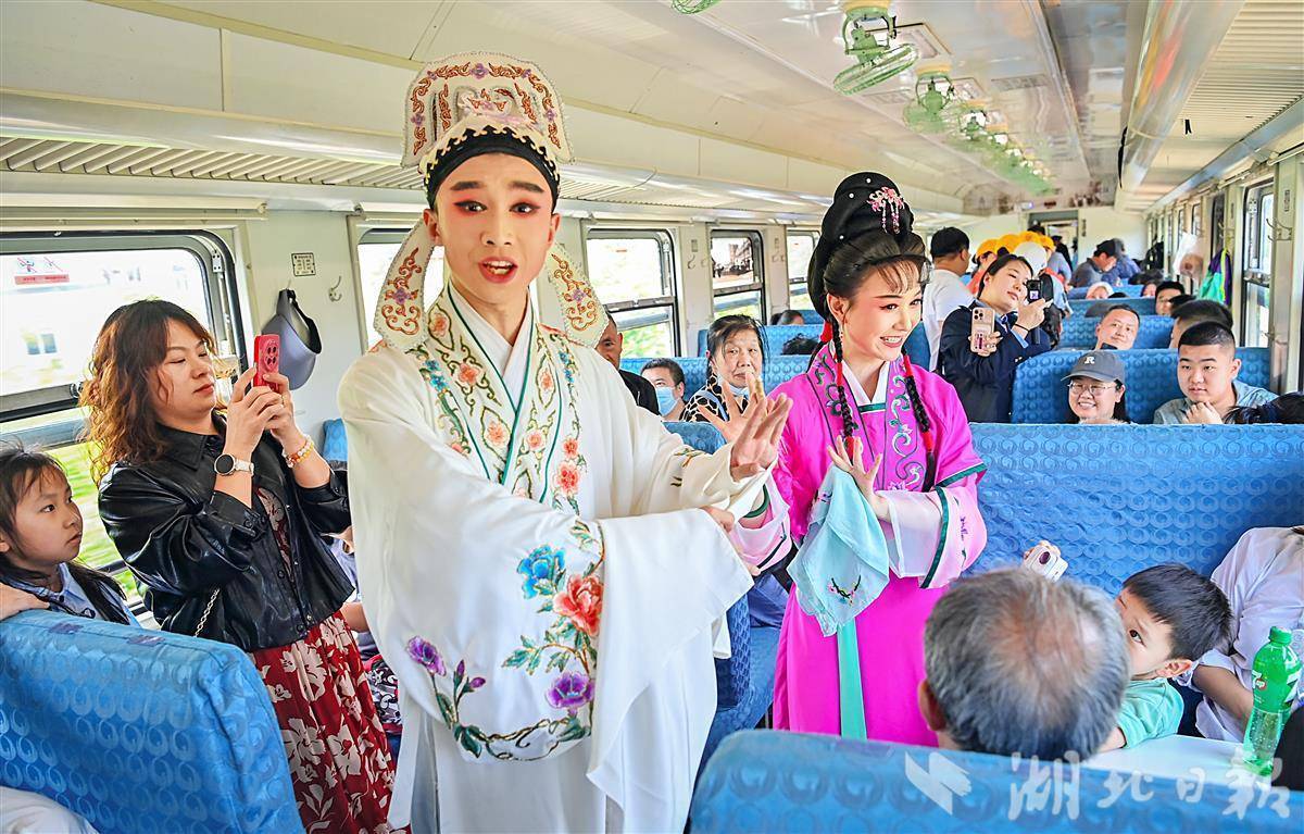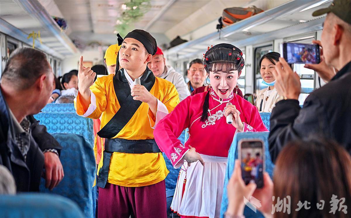 4月26日上午实盘配资之家网,湖北省演艺集团42名演职人员分为3队,登乘“武昌至武昌”5856次普速环线列车,逐节车厢表演节目。窗外风光与车厢艺韵交相辉映,艺术家们带着“压箱底”的绝活儿走进车厢,旅客们也纷纷拿出手机定格旅途美好瞬间。