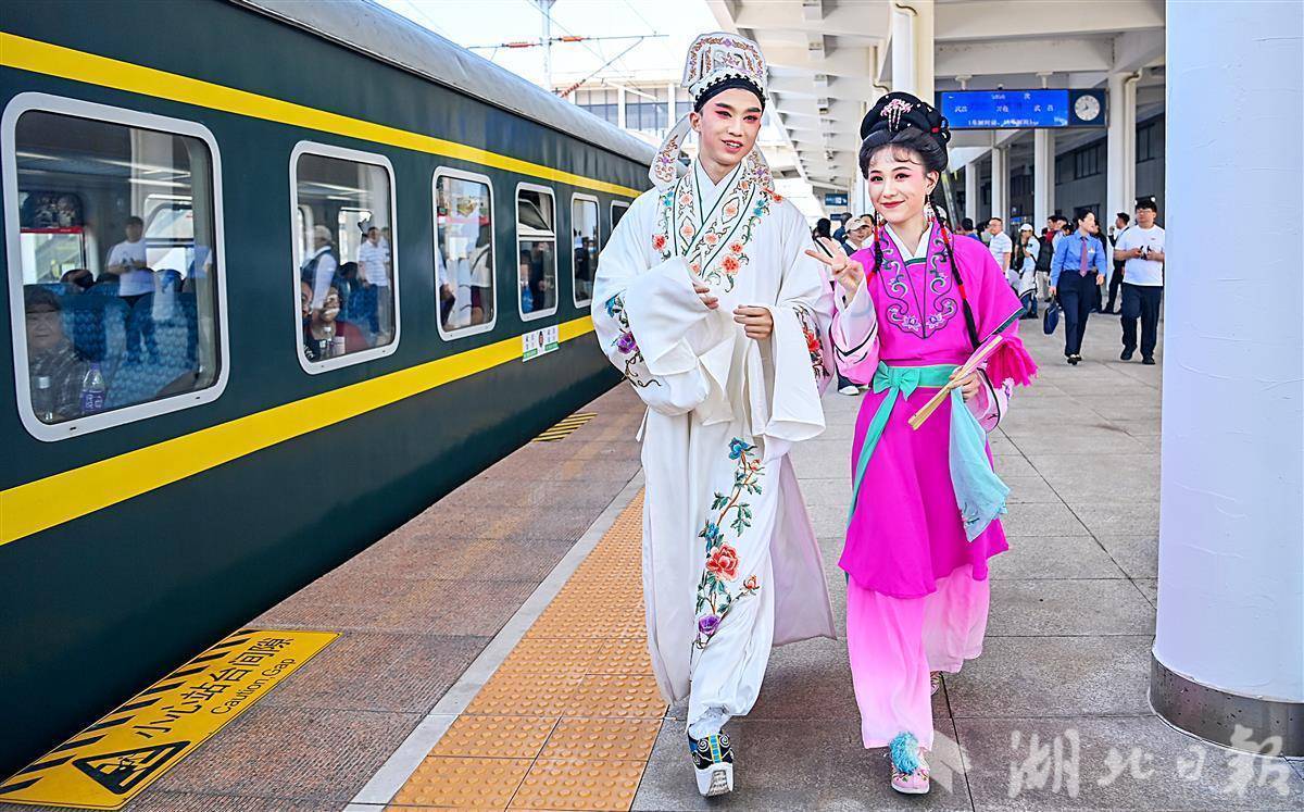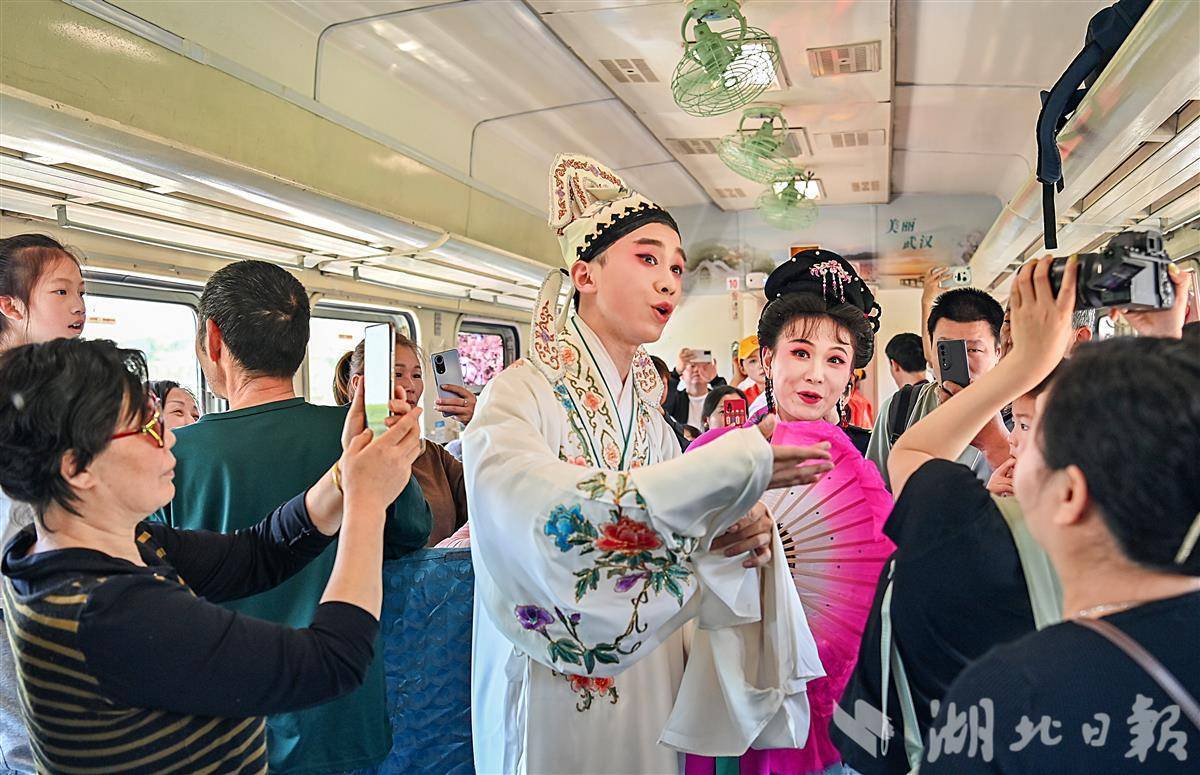 这场覆盖武汉铁路枢纽的文旅盛宴,是由武汉车站携手相关文化、文旅部门,紧扣“武昌至武昌”“武汉东至武汉东”环线普速列车运行特点,重磅推出的“荆风楚韵艺相逢”环武汉专列文旅融合活动,让更多游客在便捷舒适的铁路出行中,沉浸式感受荆楚文化的深厚底蕴与武汉城市的独特魅力。(湖北日报全媒记者 朱熙勇 通讯员 刘娟 摄)