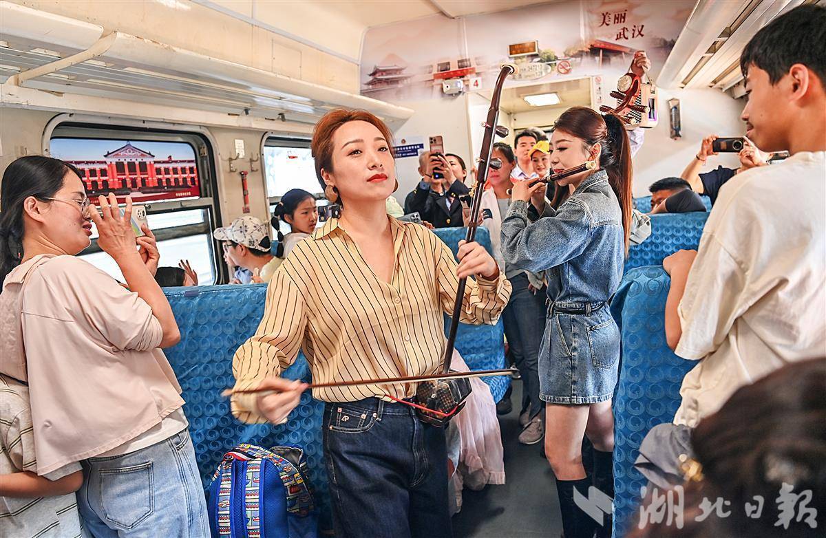 歌手在“武昌至武昌”5856次普速环线列车上表演。