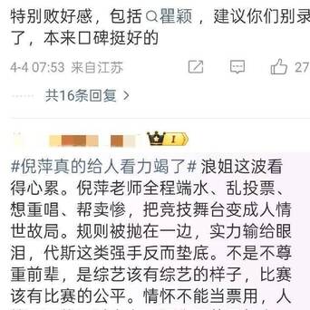 所以倪萍才上了一期节目,网友们就已经提议换掉倪萍了,因为她那套人情世故准则,打破了《浪姐》原本的赛制,看得人冒火。