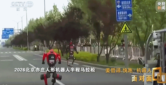 r记者:机器人以后要带着人跑马拉松了,不是人带着机器人跑马拉松。